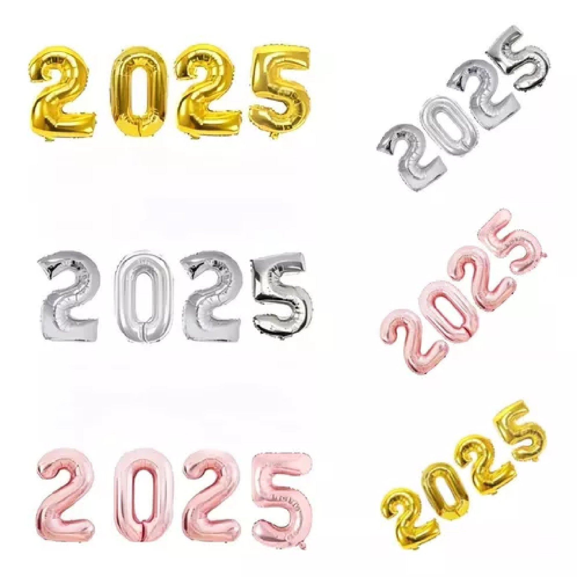 Balão Bexiga Numero Metalizado 2025 Ano Novo Reveillon Prata Dourado Rose Gold
