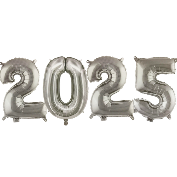 Kit Balão Bexiga Ano Novo 2025 + Numero Metalizado + Branco + Cristal Decoração Rose GoldPrata